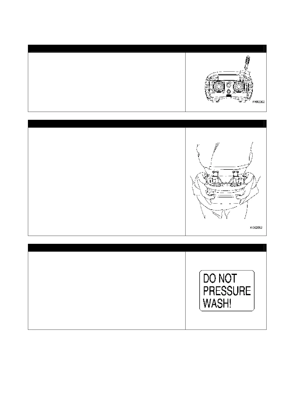 • Never attempt to high pressure wash or wash with water the