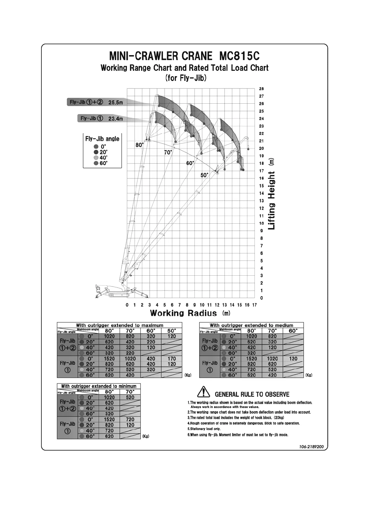 (1) Diagram of fly jib working range chart (106-2189200)