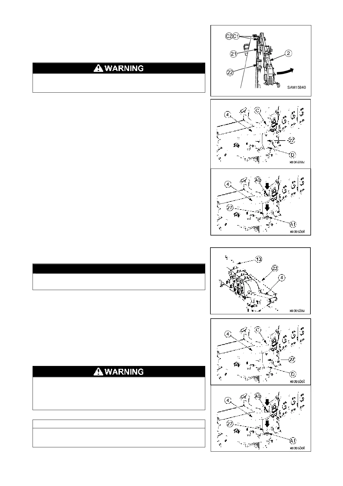 13. Pull out the No. 1 fly jib (2) toward you using the position