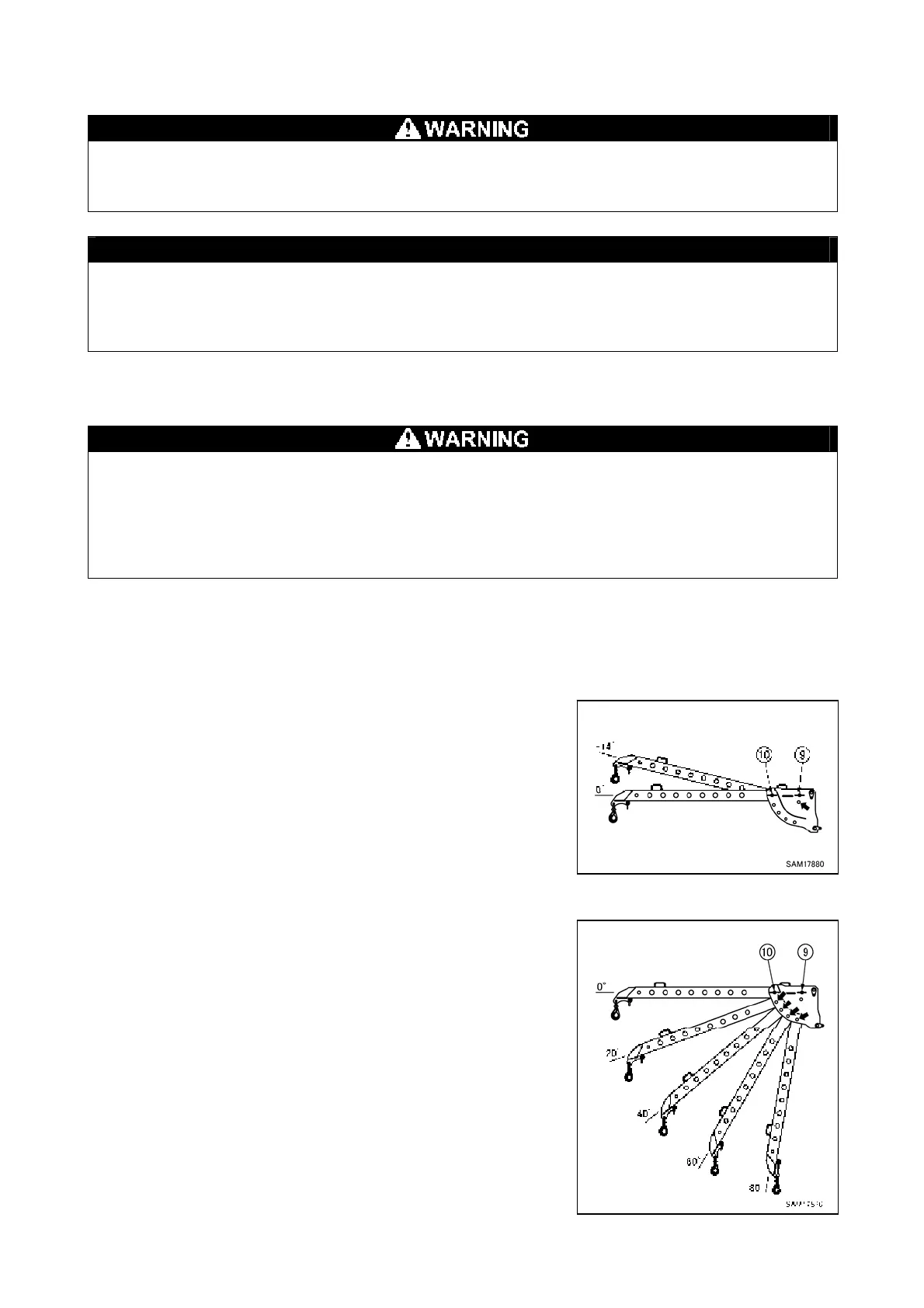 • When changing the angle, the searcher hook boom might fall suddenly after pin is pulled out,