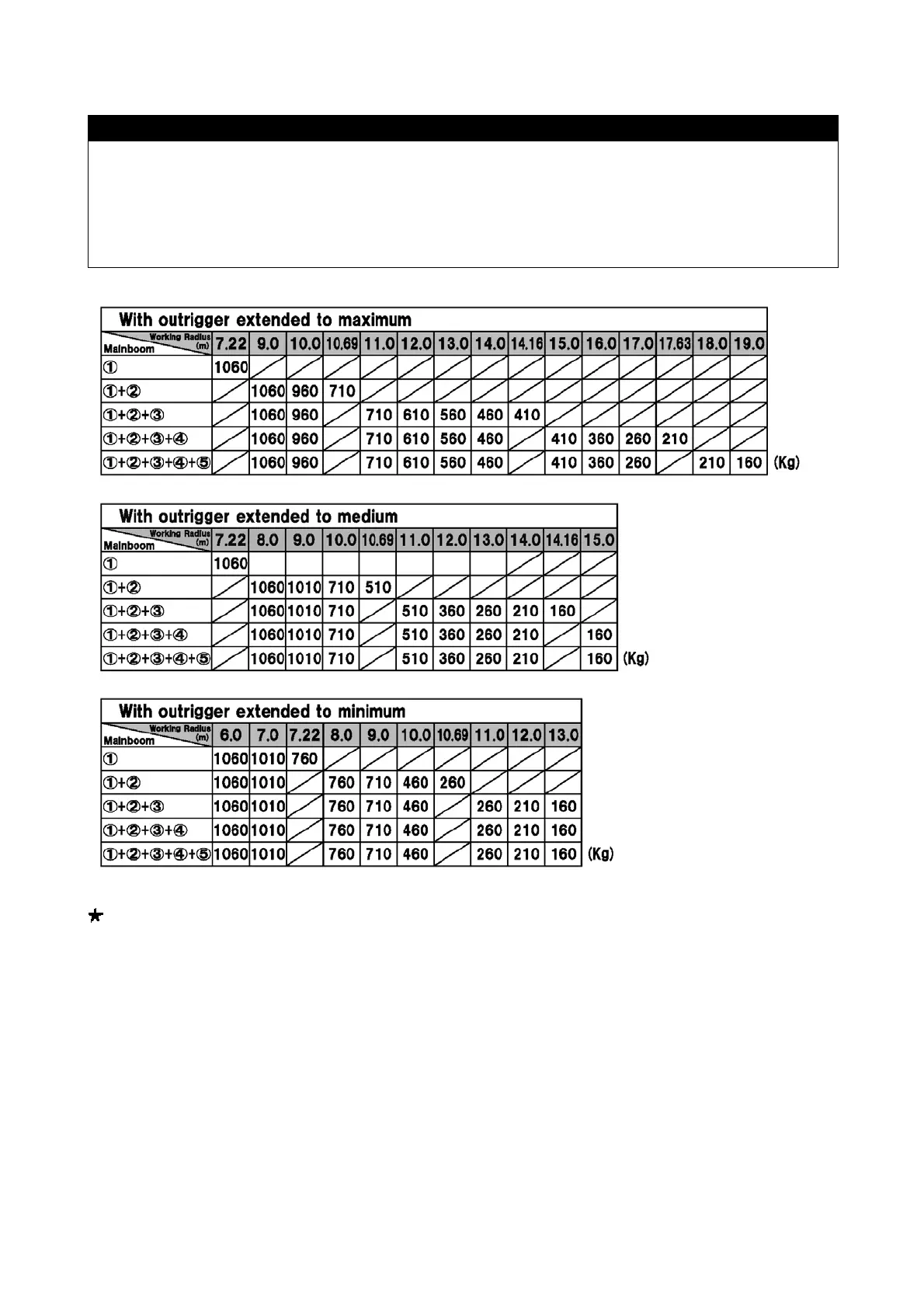 extension, the number of main boom sections, and the working radius. Check the available