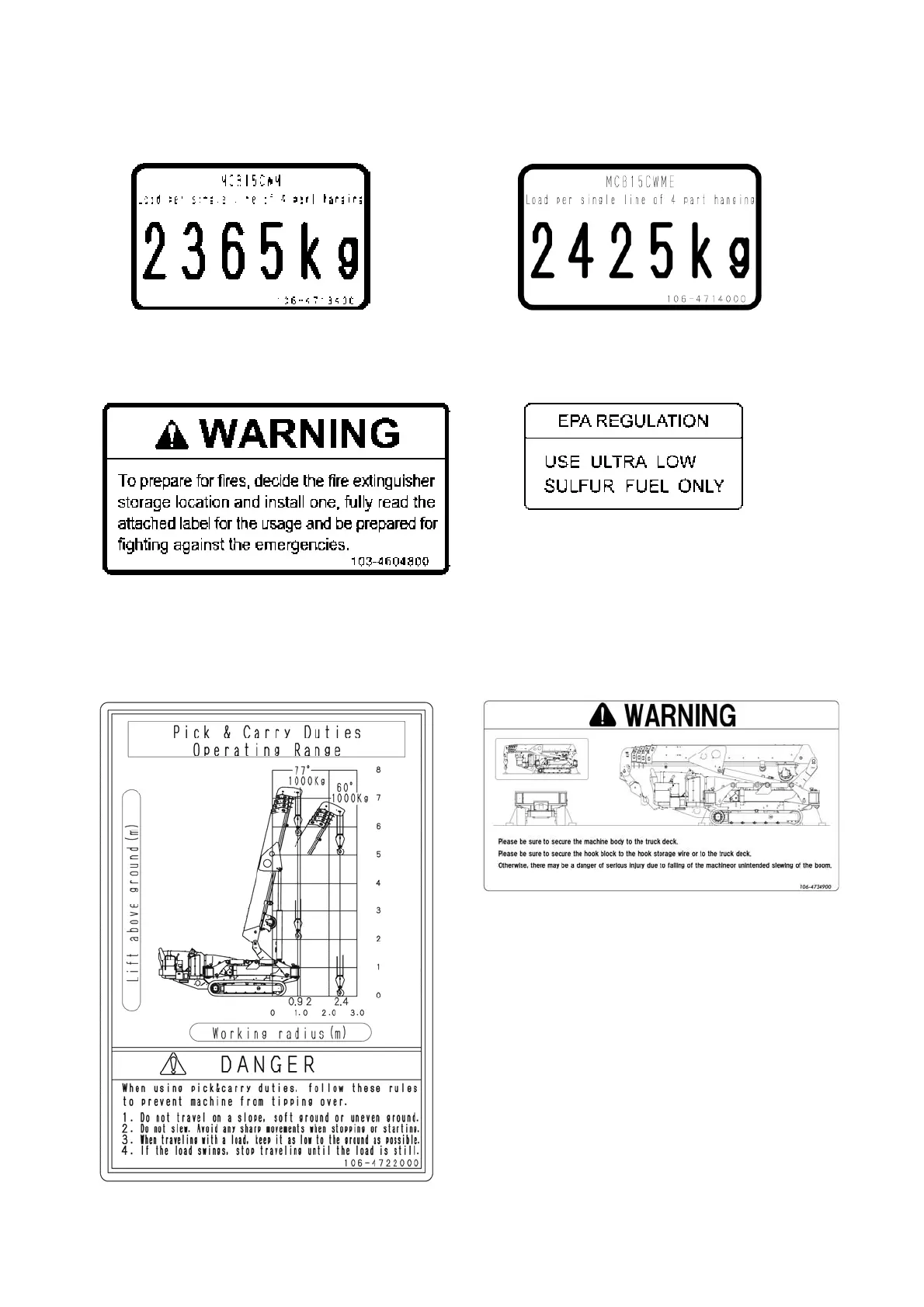 (57) Fire extinguisher caution (103-4604800) (60) EPA regulation (114110-07761)