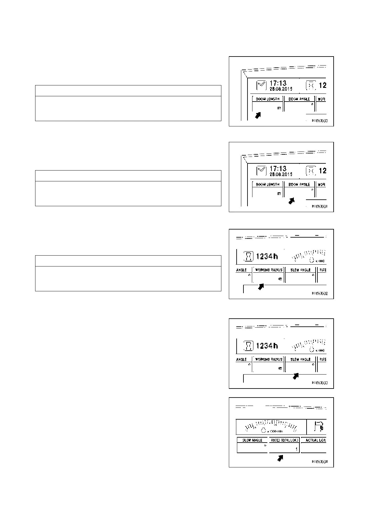 Shows the current slewing angle when operating the crane.