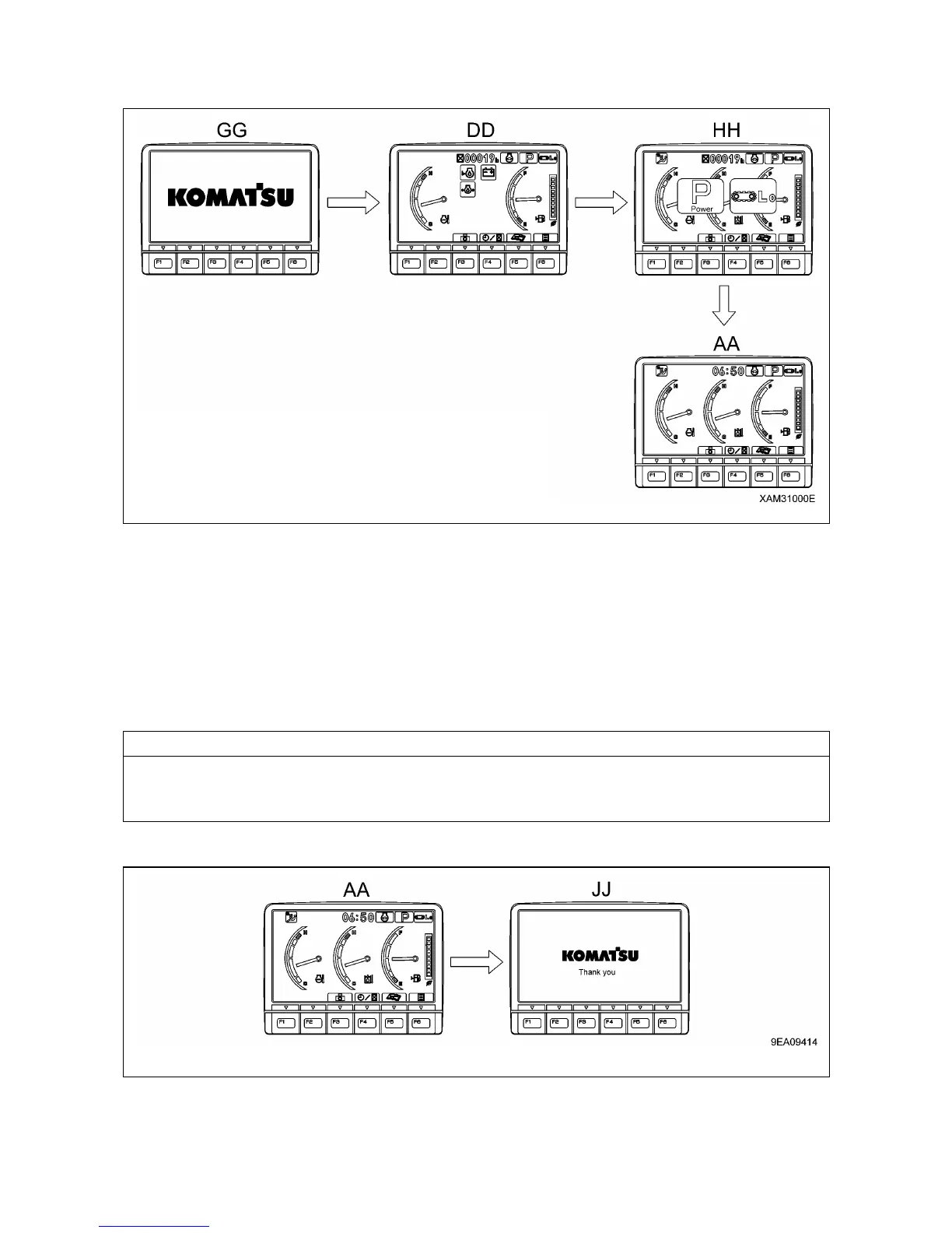 • When the starter switch is turned to the ON position, the Opening screen GG is displayed.