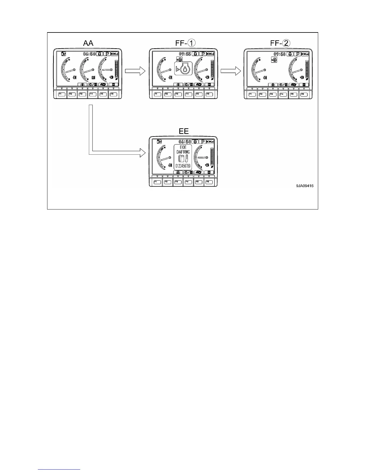 AA: Standard screen EE: Error screen FF-(1): Warning screen FF-(2): Warning screen