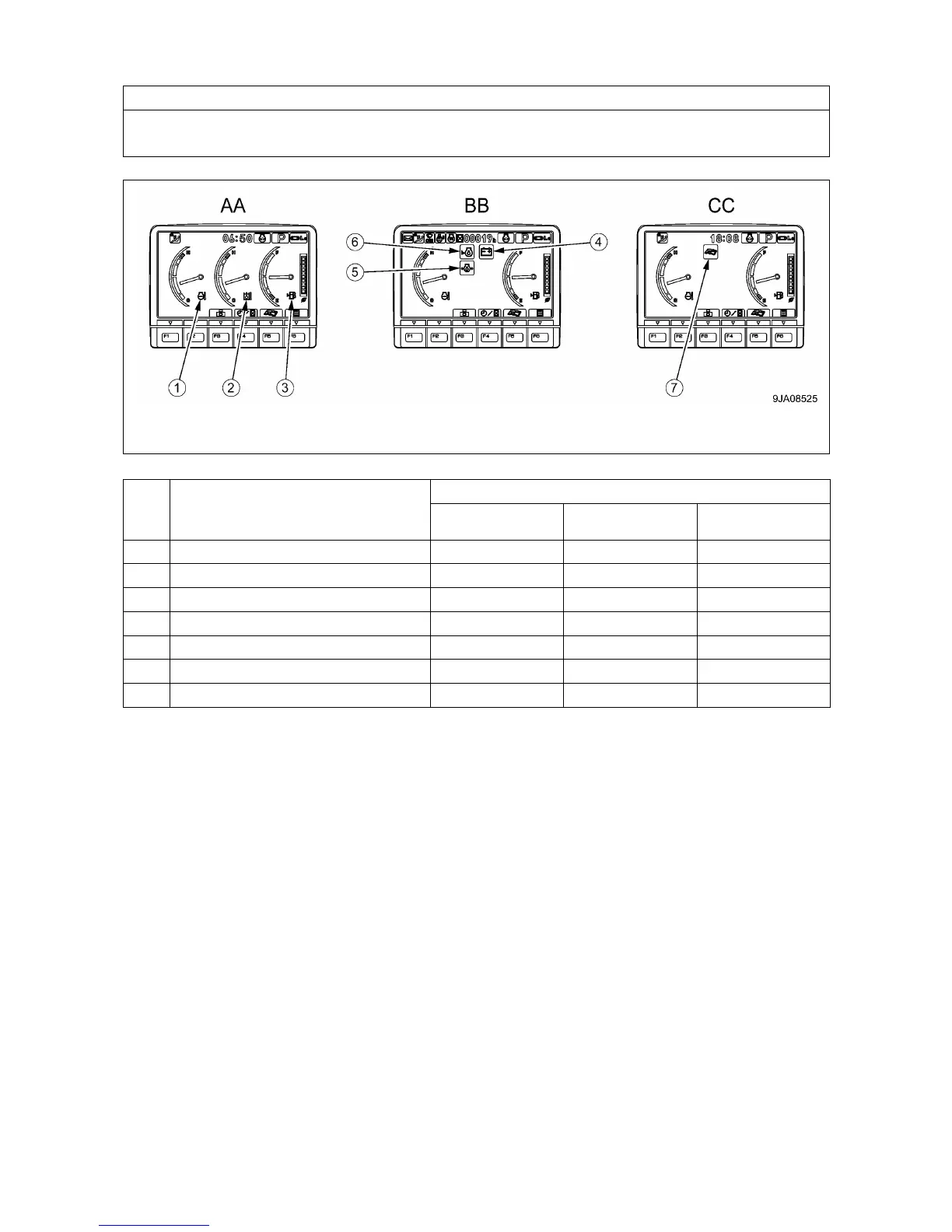 AA: Standard screen BB: All lamps lit up screen CC: Maintenance interval warning screen