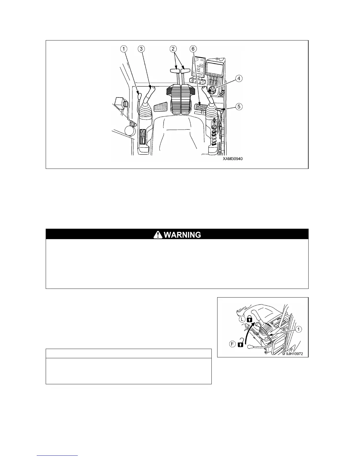 • When leaving the operator’s compartment, set the lock lever securely to the LOCK position. If