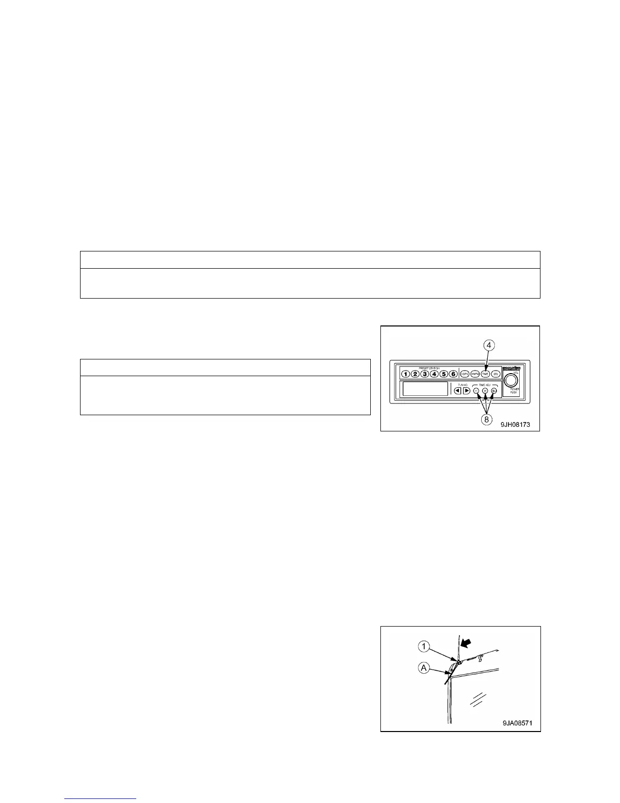 1. Loosen antenna mounting bolt (1) and store the antenna at