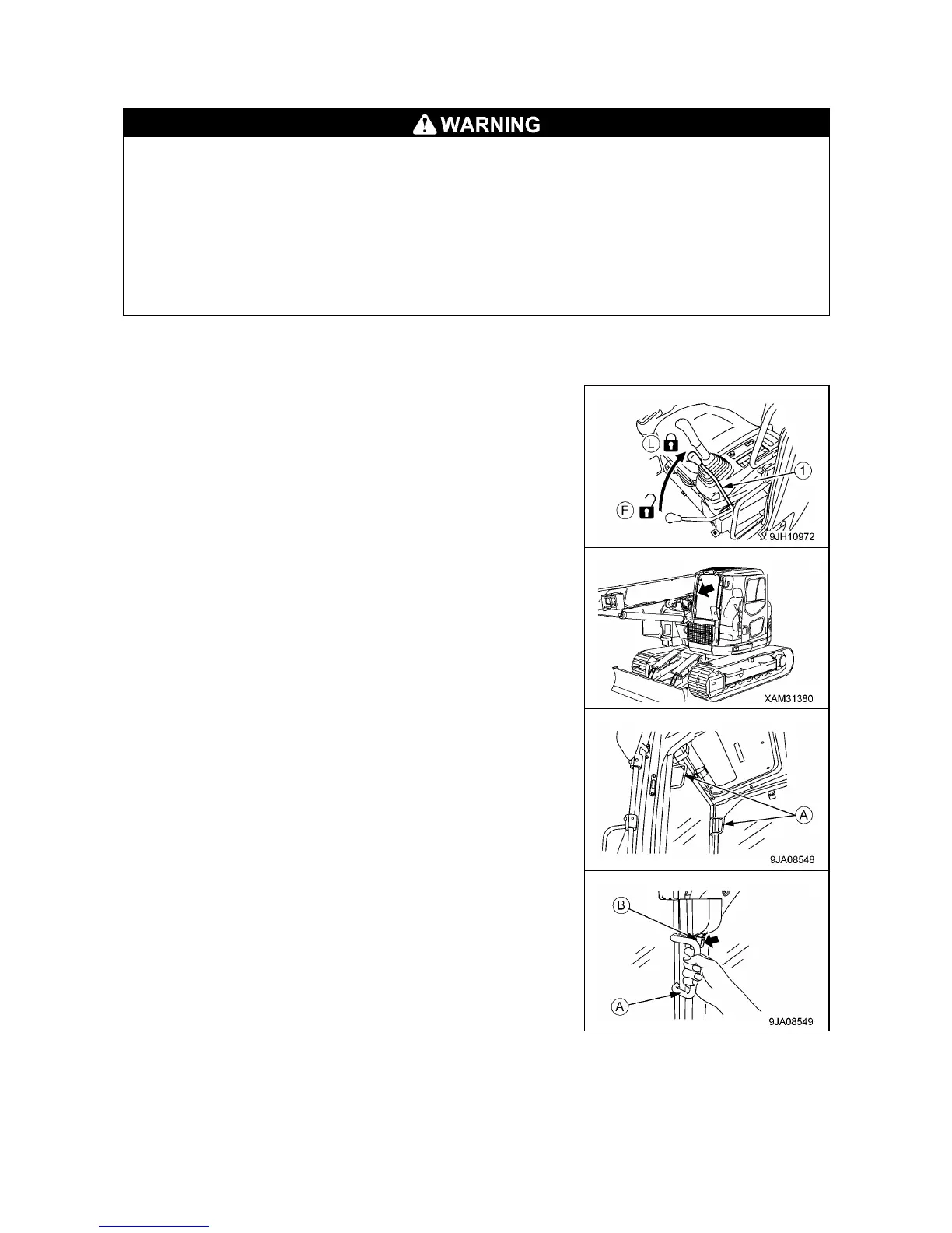 • It is possible to stow (pull up) the front window in the roof of the operator‟s compartment.