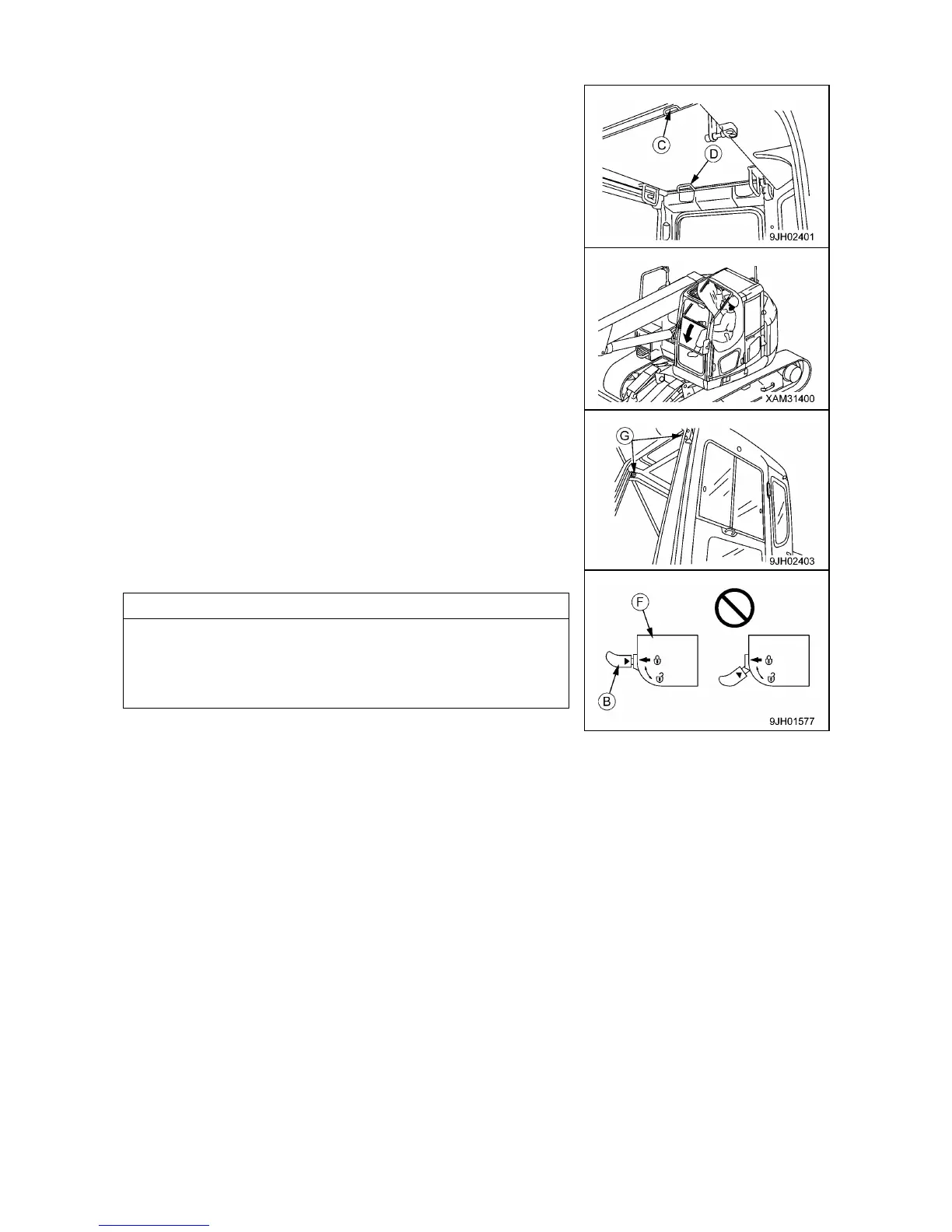 6. Check that lever (B) is securely at the LOCK position.