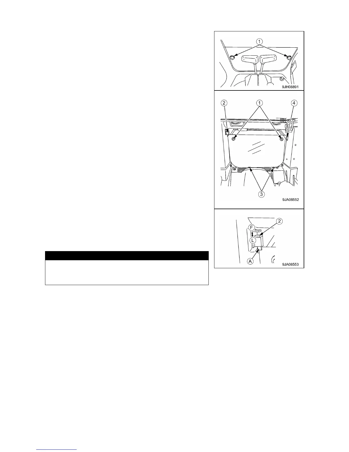 operator‟s cab and lock it securely with lock (2). The procedure