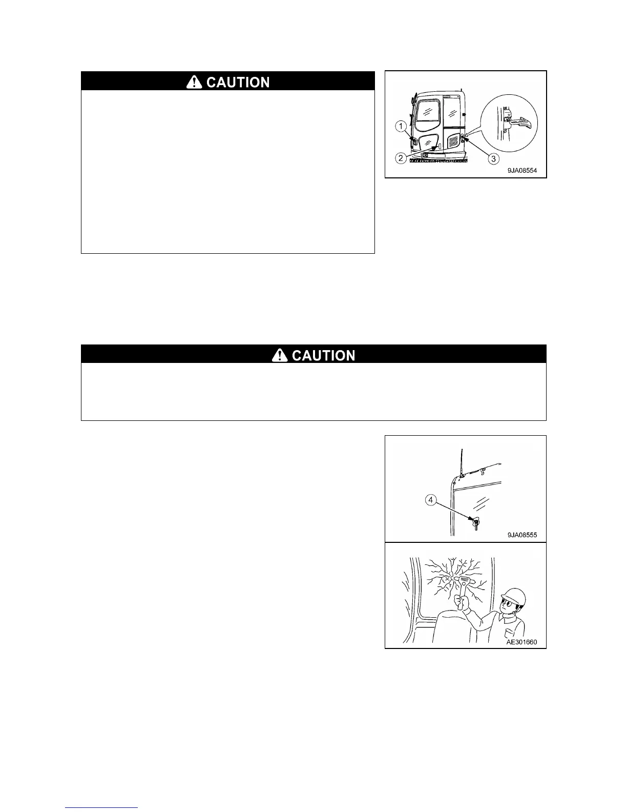 To escape from Operator‟s cab, use hammer (4) to break the glass