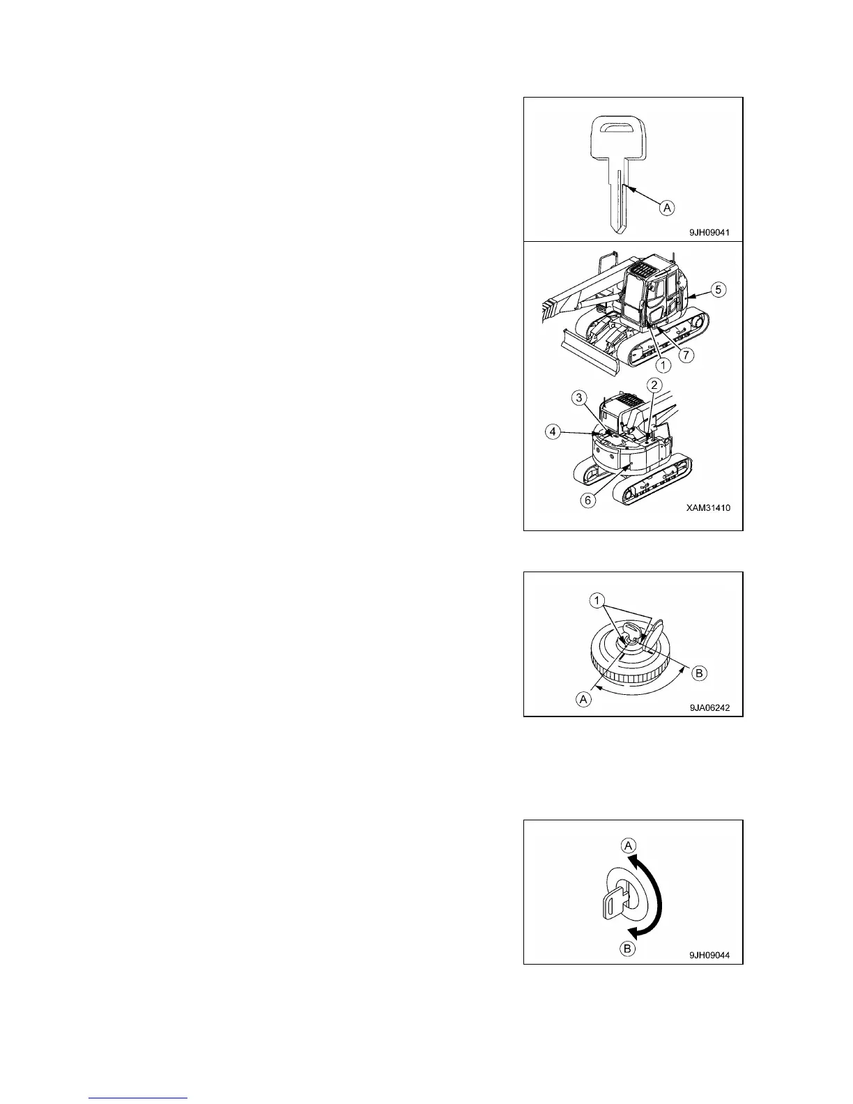 2. Turn the key to LOCK position (B), and then remove the key.