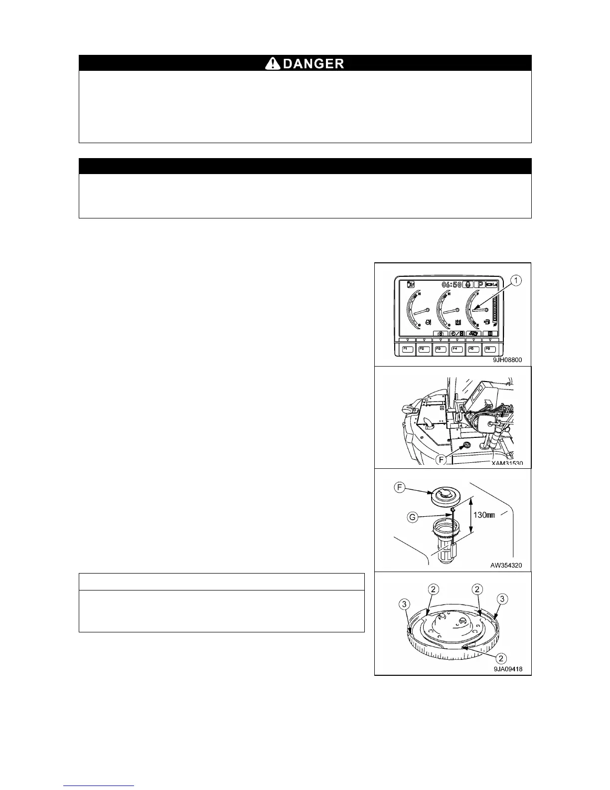 • Position of tip of float gauge (G) when tank is full: Approx. 130