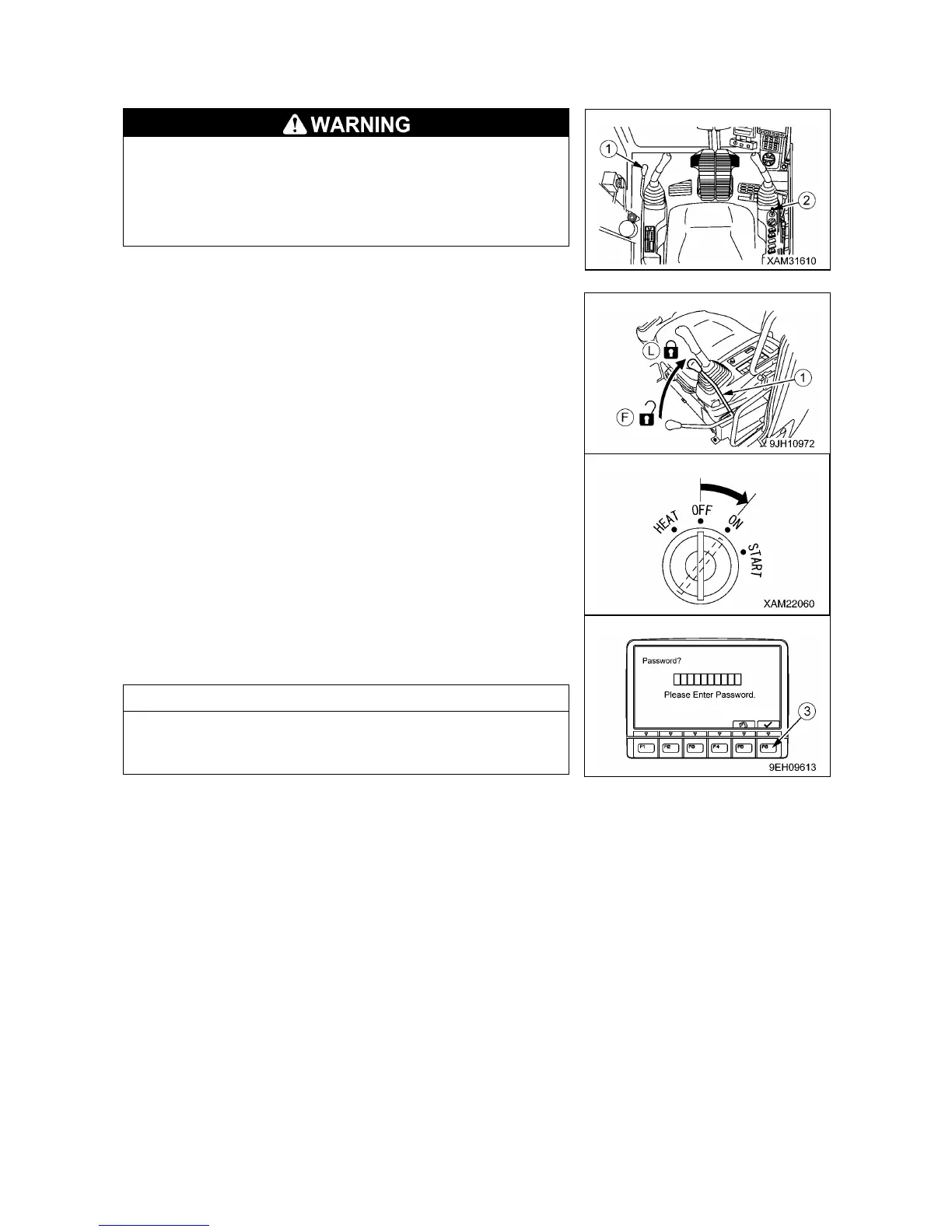 3. Insert the key in starter switch (2), turn the key to the ON
