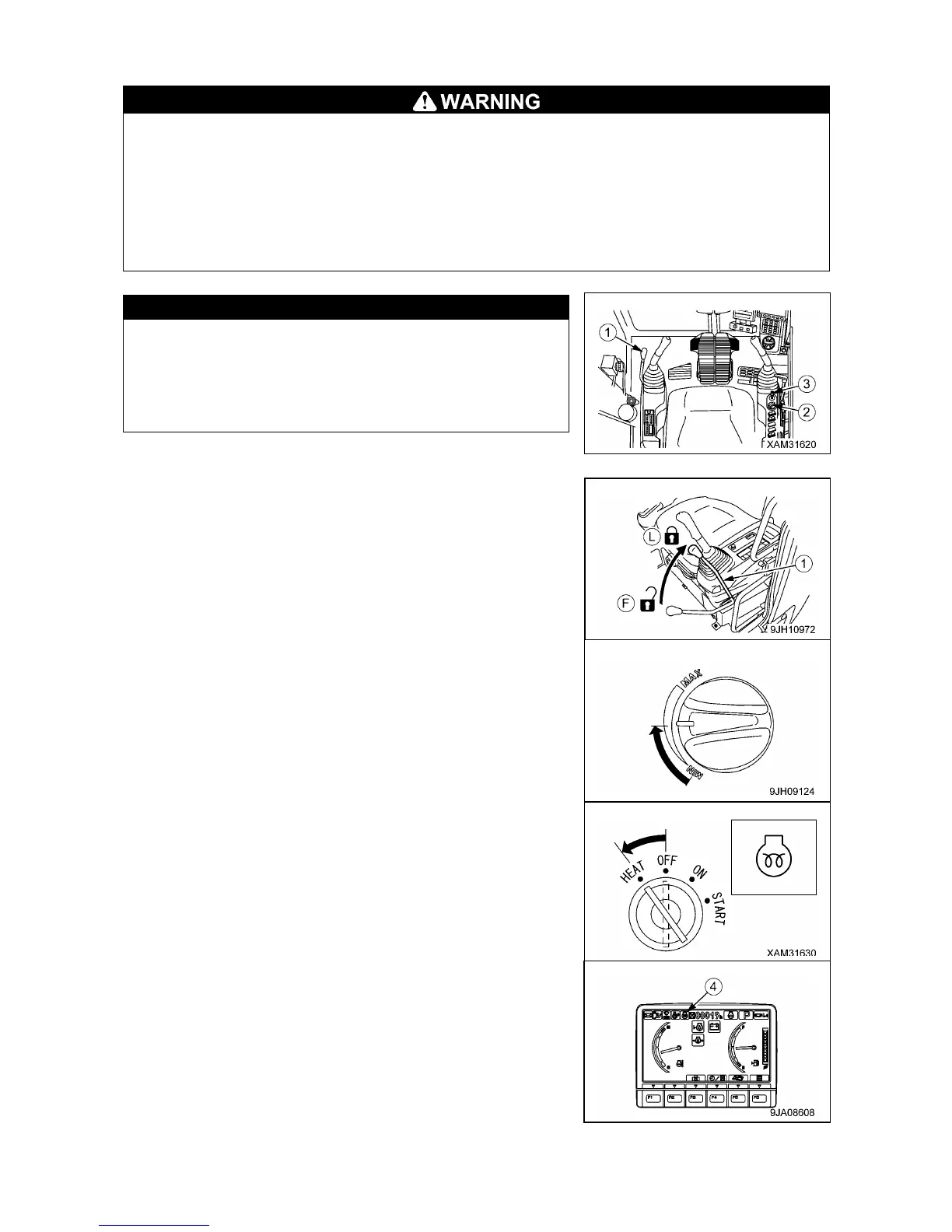• Exhaust gas is toxic. When starting the engine in confined spaces, be particularly careful to