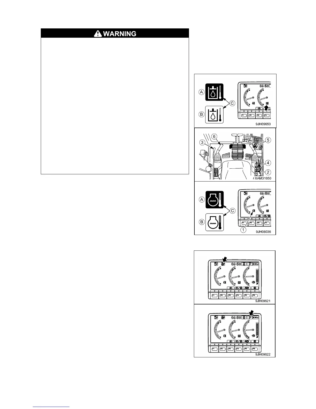 until the hydraulic oil temperature monitor displays the correct
