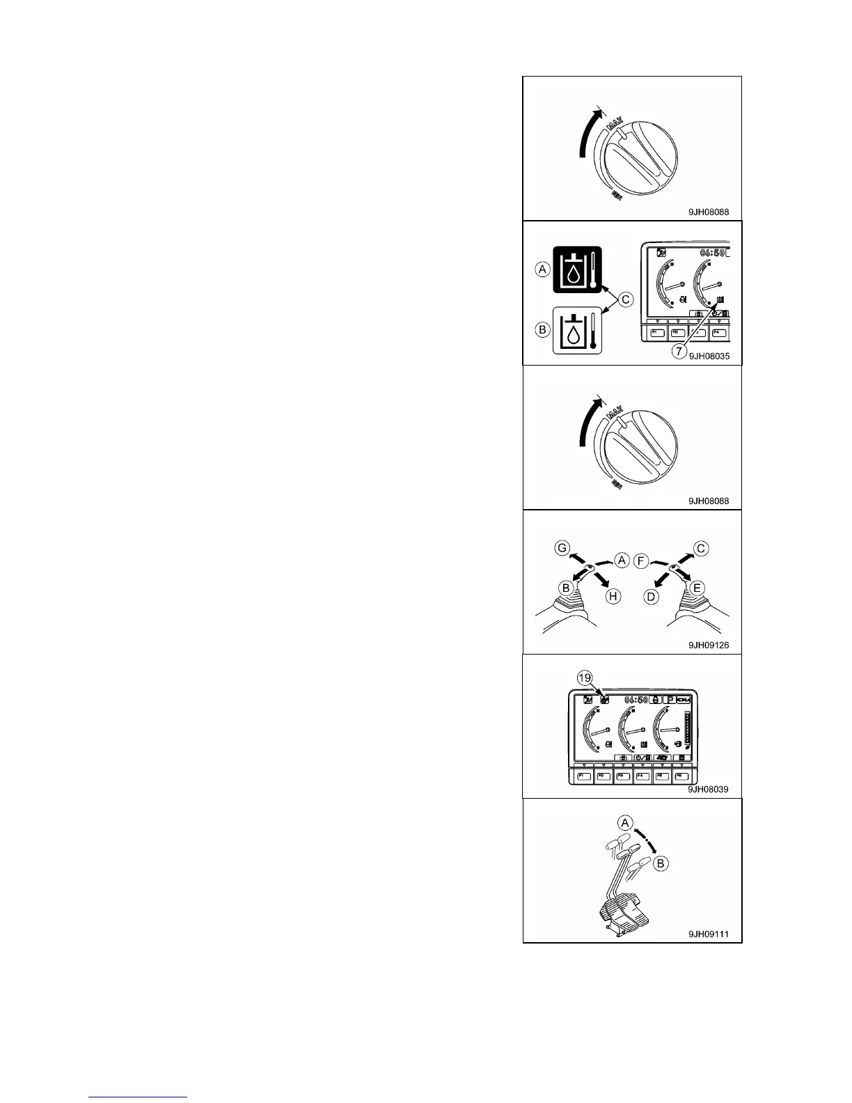 10 for 3 to 5 minutes until hydraulic oil temperature monitor (7)