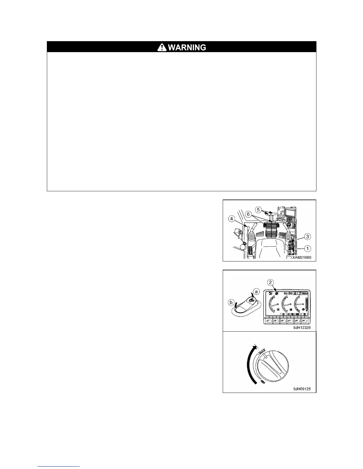 • The accelerator pedal should only be used to control the crane operation while the machine is