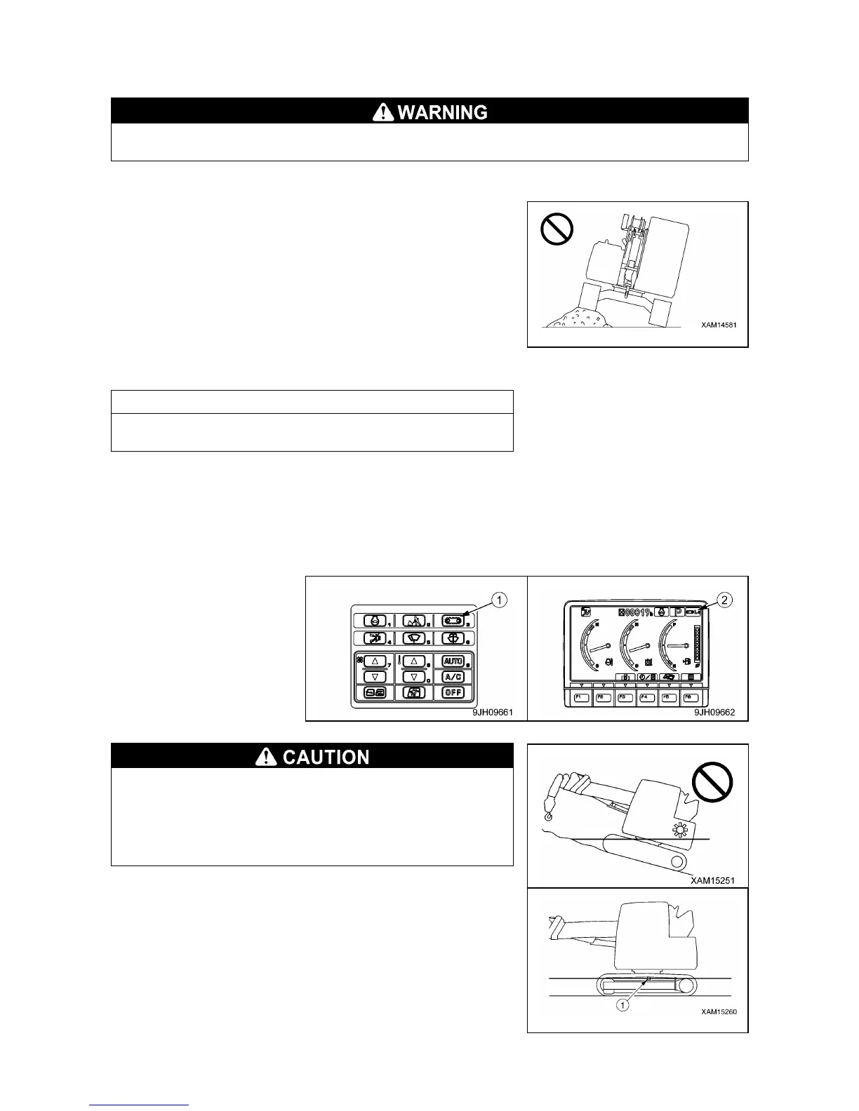 • Press travel speed selector switch (1) to change the travel speed. The travel speed (Lo, Hi) is displayed