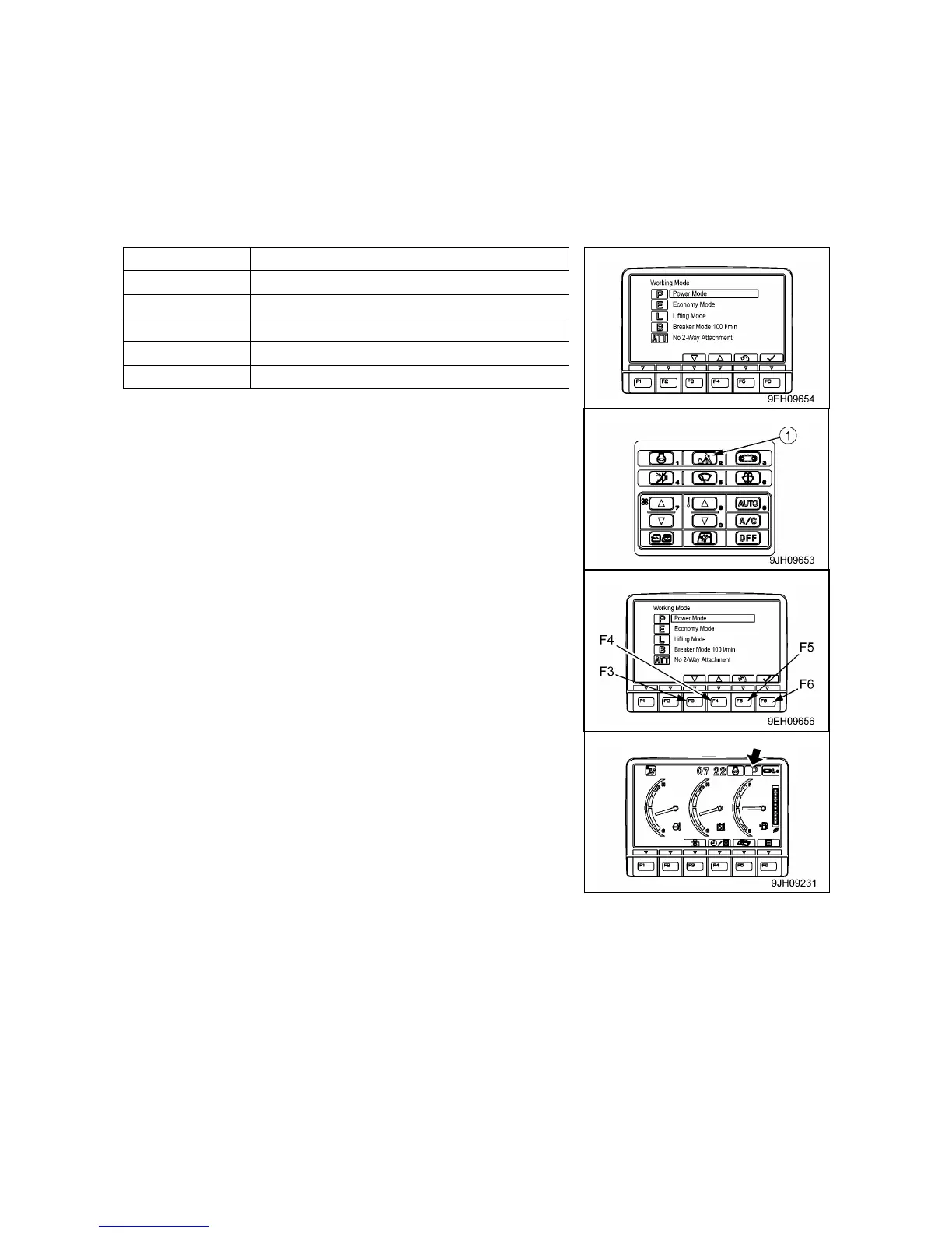 Use working mode selector switch (1) to select the working mode that matches the operating conditions or