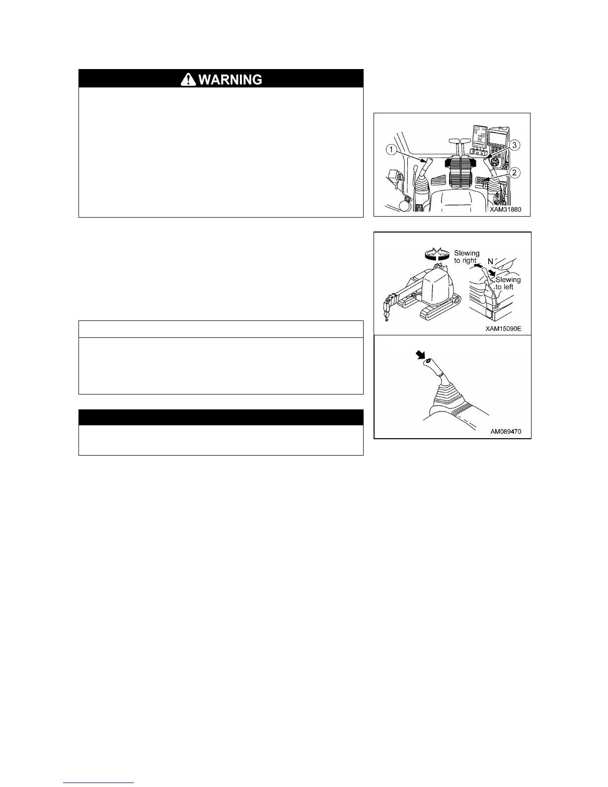 • Slew counter clockwise: Push the lever toward outside (left).