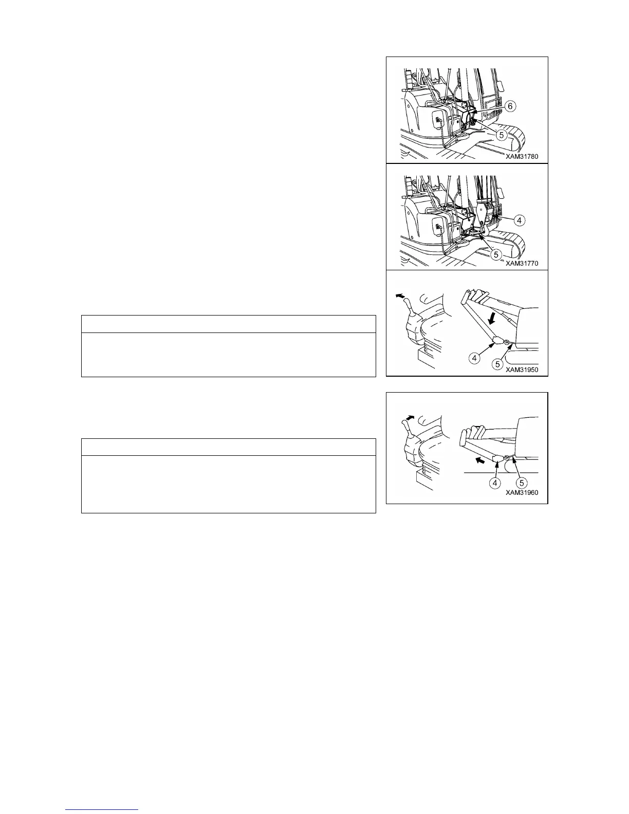 7. Operate the right work equipment control lever (2) to BOOM