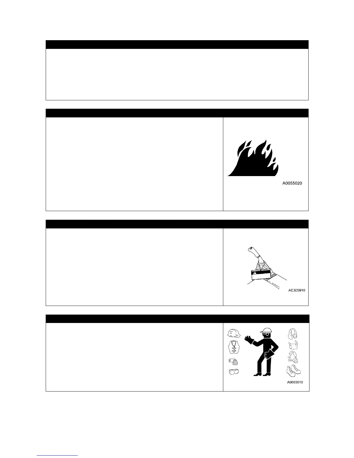 • Always put on a helmet, safety shoes and safety belt.