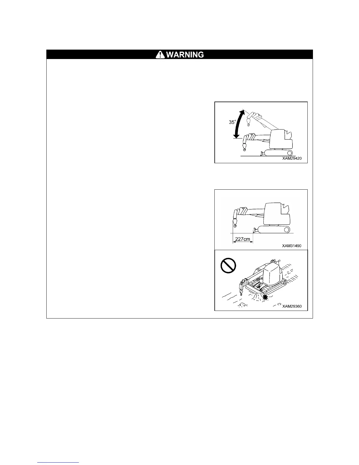 • Avoid ground leveling operations at the same time as hoisting operations. Otherwise, it may
