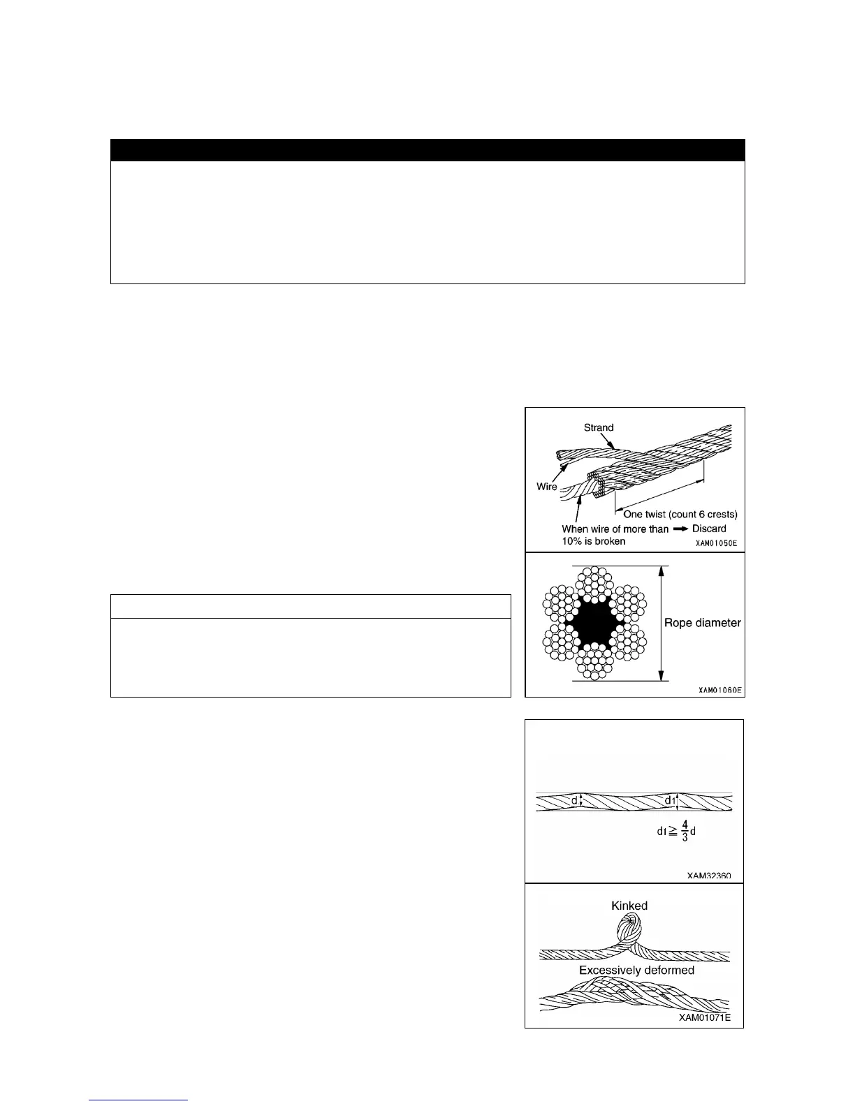 • Do not use old wire ropes even if they had not been used.