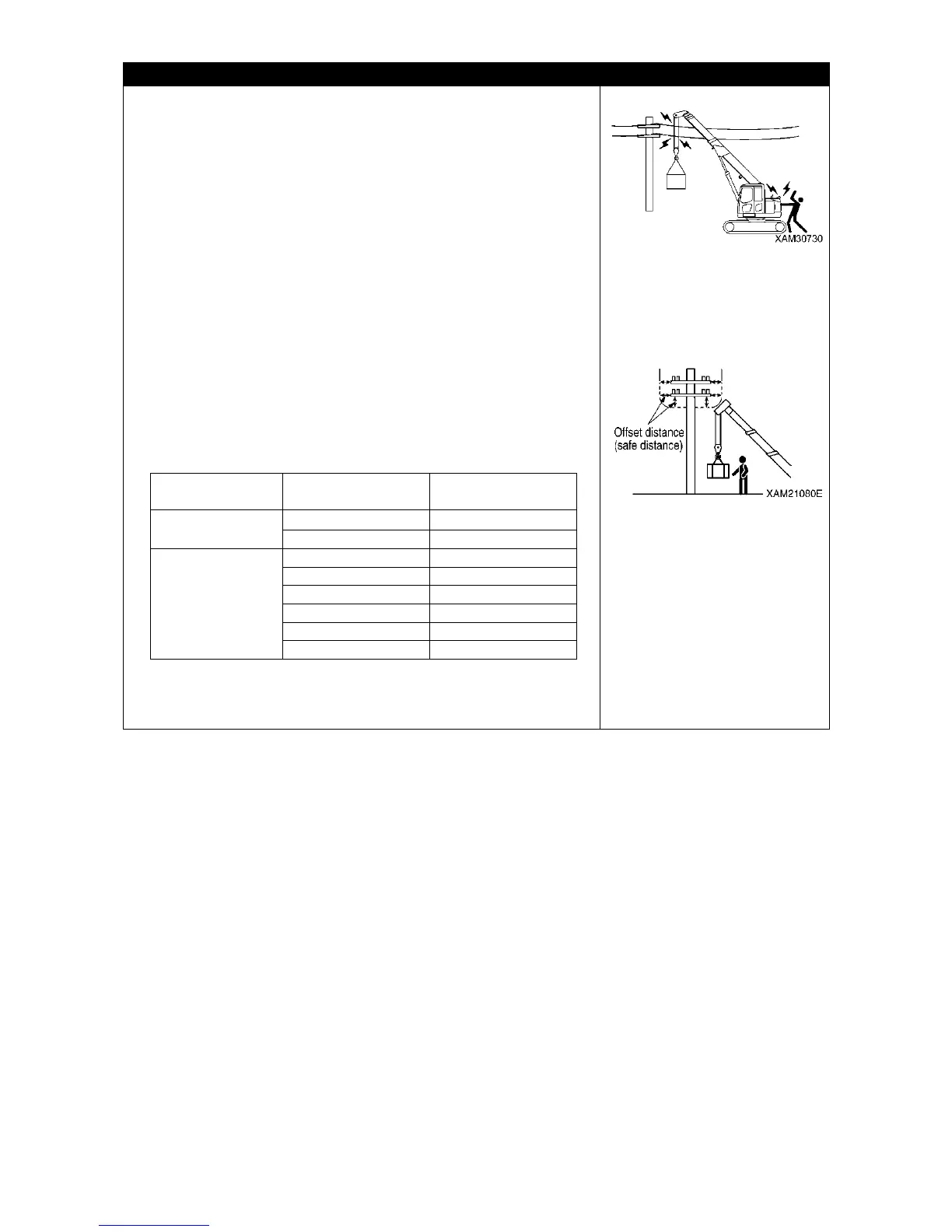 • Place a guide and let him/her watch so that the boom, wire rope or