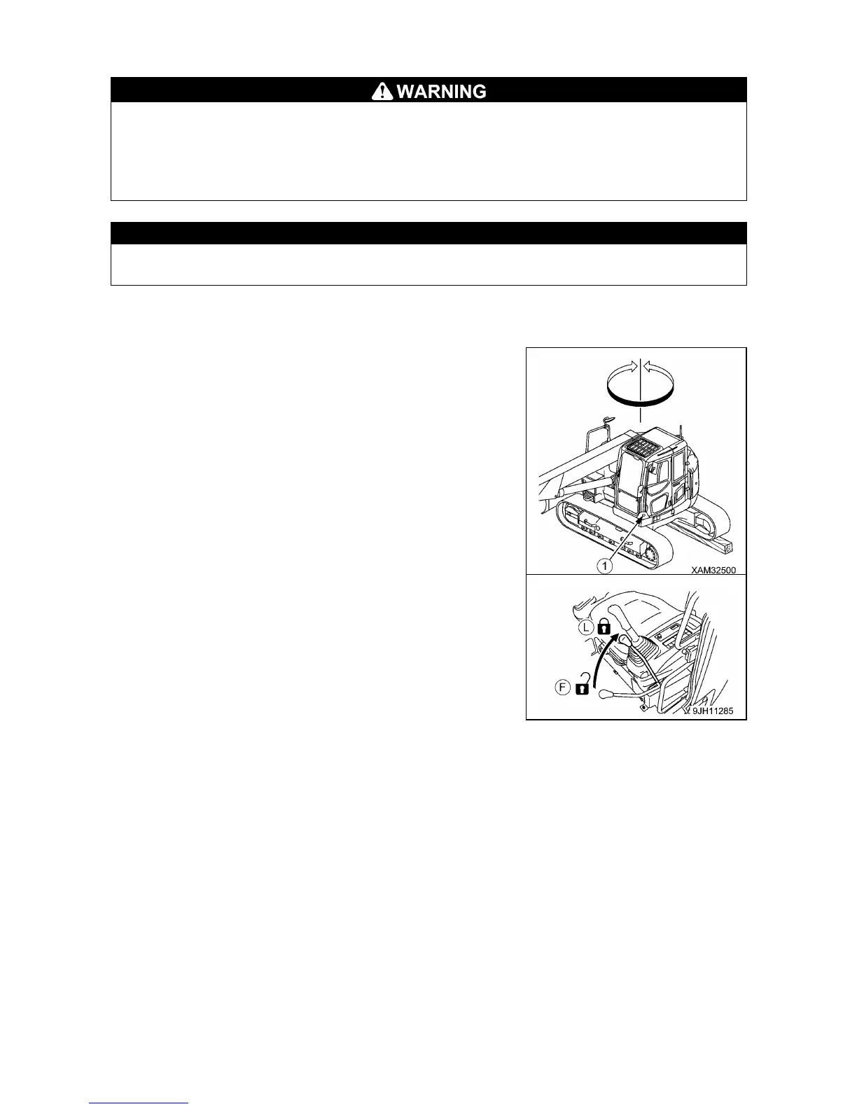 2. Swing the upper structure slowly so that water drain holes (1) in