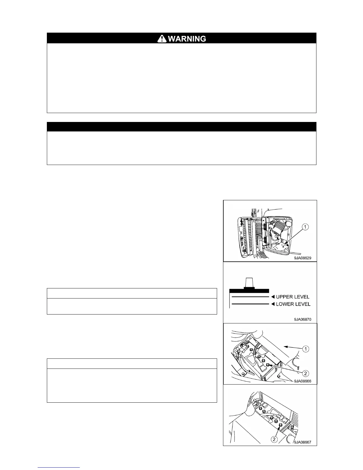 • Do not use battery if the battery electrolyte level is below the LOWER LEVEL line. This will