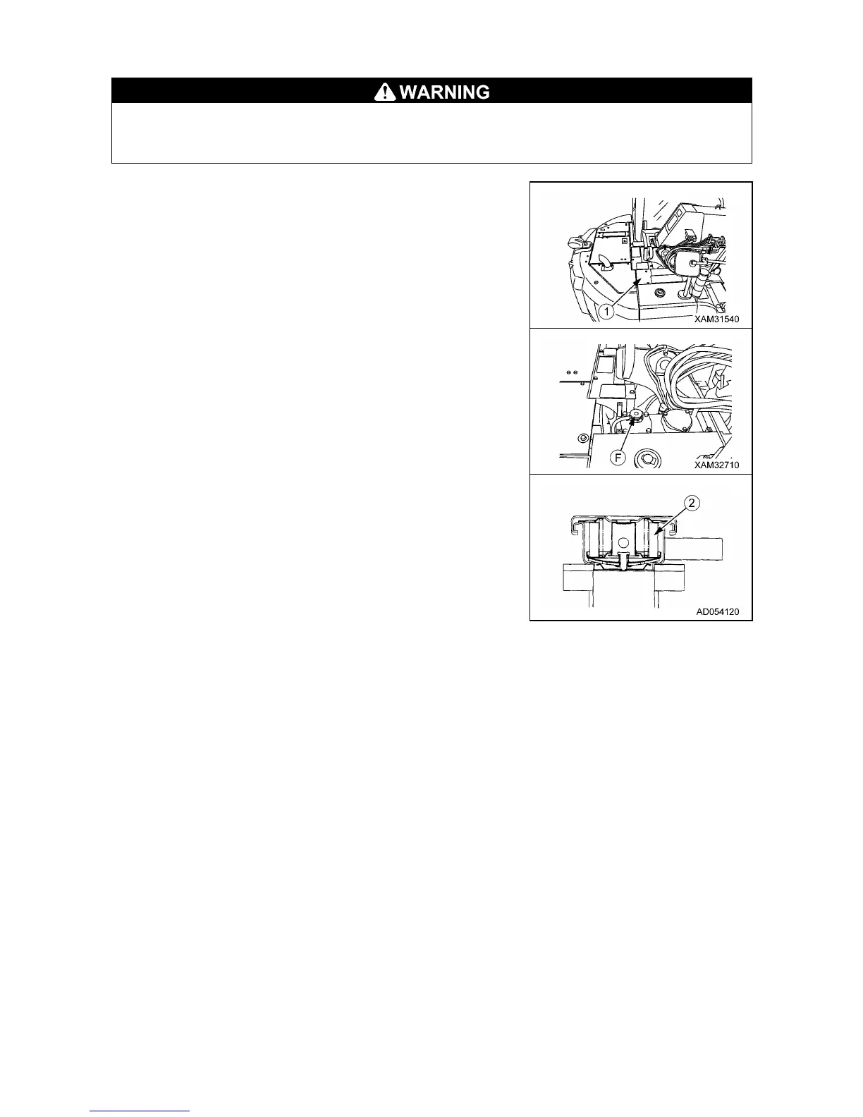 2. Remove the cap of oil filler (F) over the hydraulic tank.