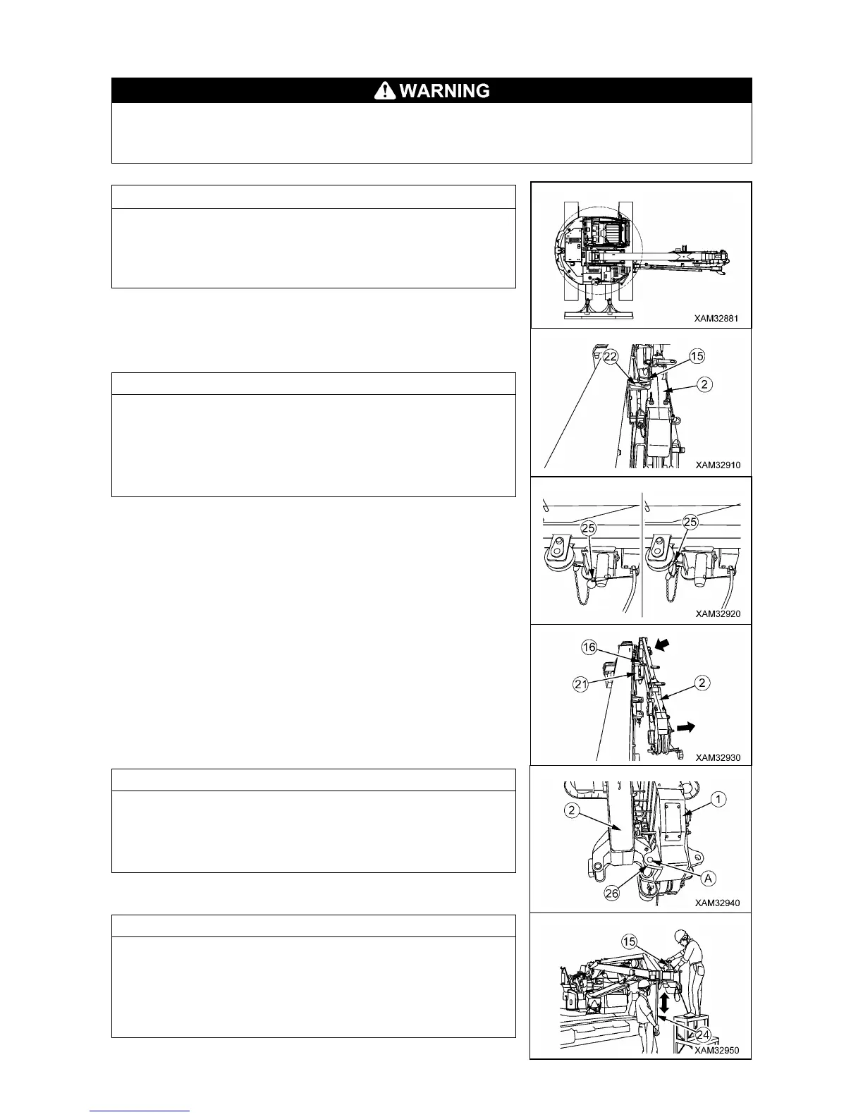 1. Pull the linchpin (25) out from the position pin (15) in the Fly-jib
