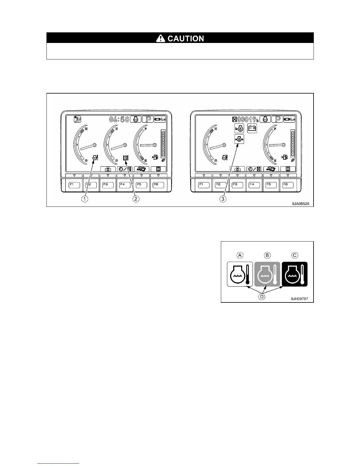 If the monitor lights up red, Stop the engine immediately or run at low idle, check applicable