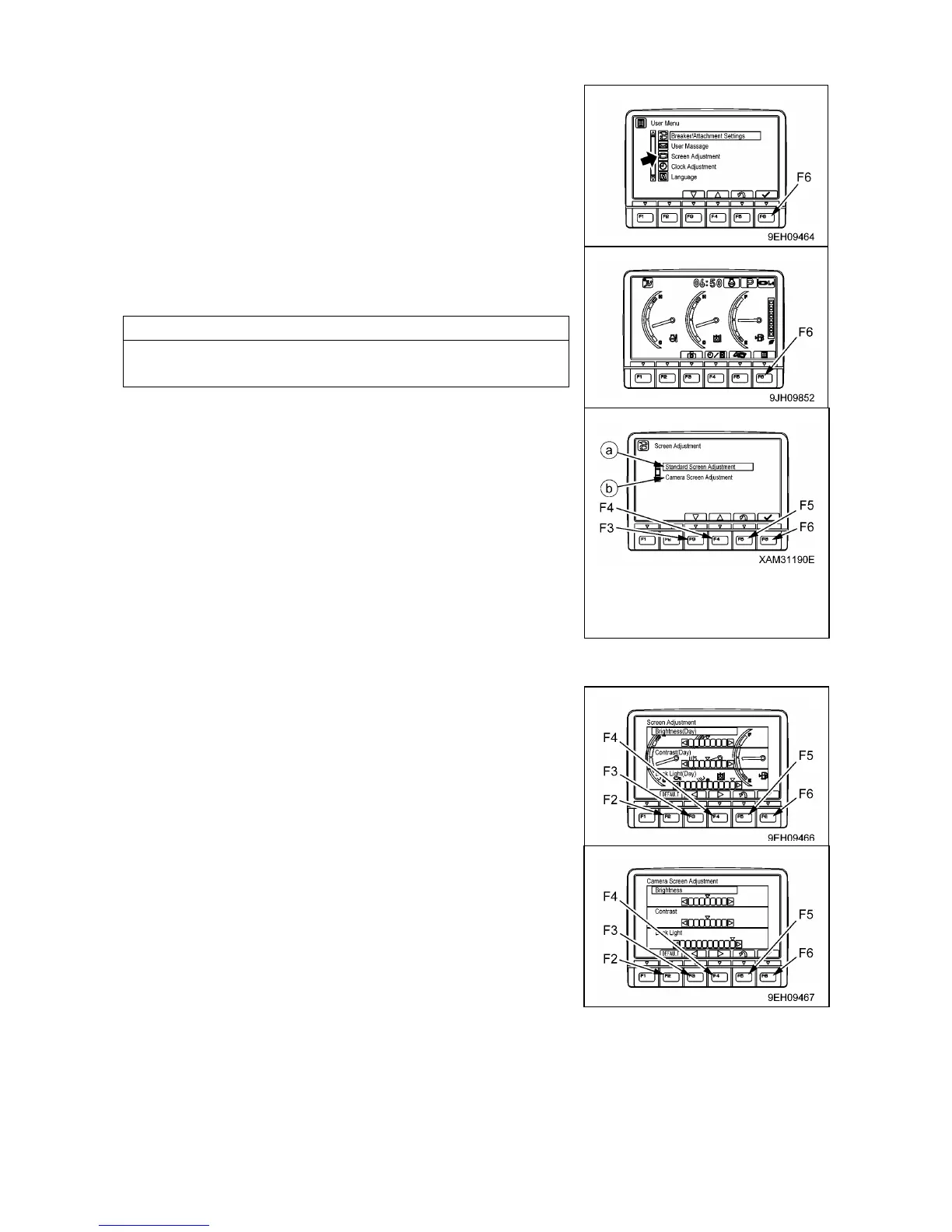 4. Use switches (F2 to F6) to adjust the brightness, contrast, and