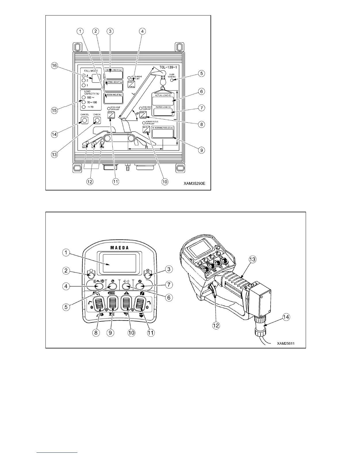 (1) LCD Screen (8) Slewing/No.1 Outrigger Operation Lever