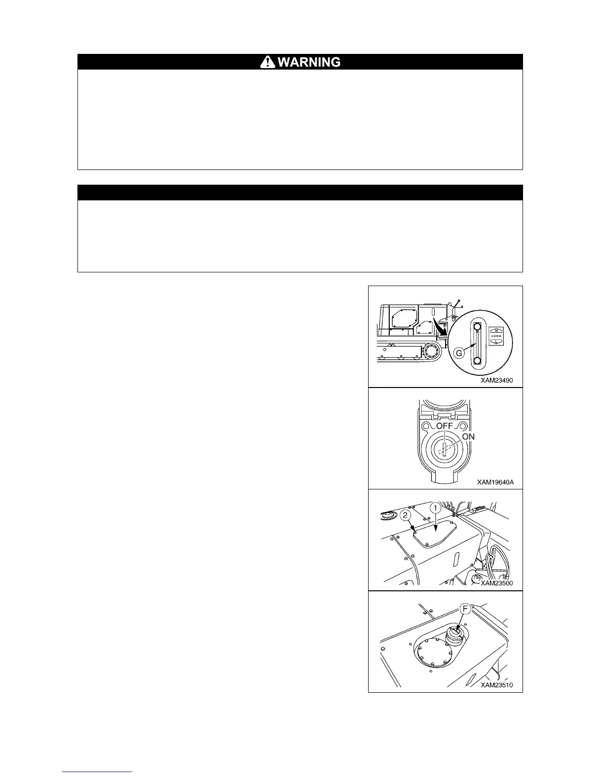 • The oil may spout out when the cap of the hydraulic oil tank is removed.