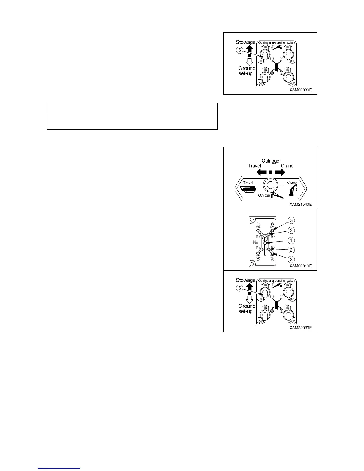 5. Operate the outrigger setting switch (5) on the outrigger