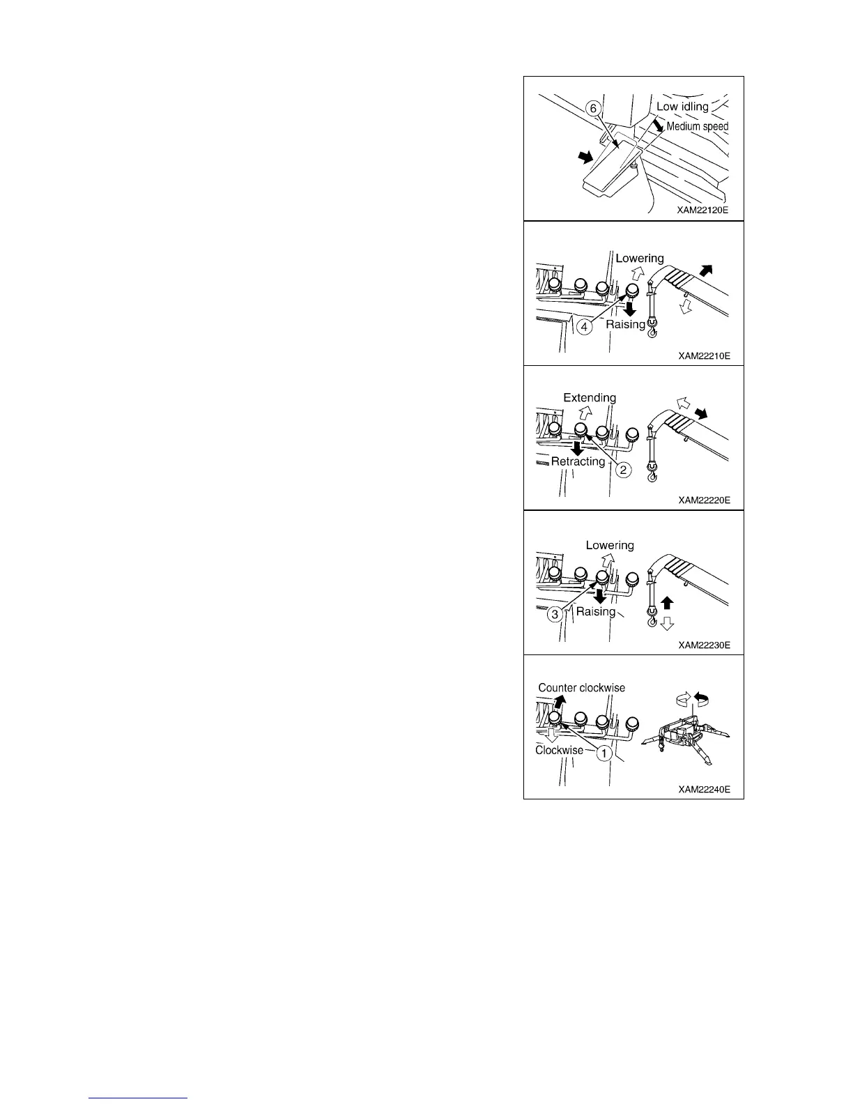 7. Operate the boom derricking lever (4) slowly forward/backward