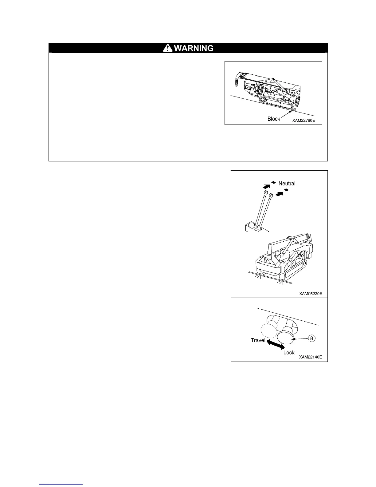 2. Knock down the traveling lock lever (8) to the “LOCK” position.