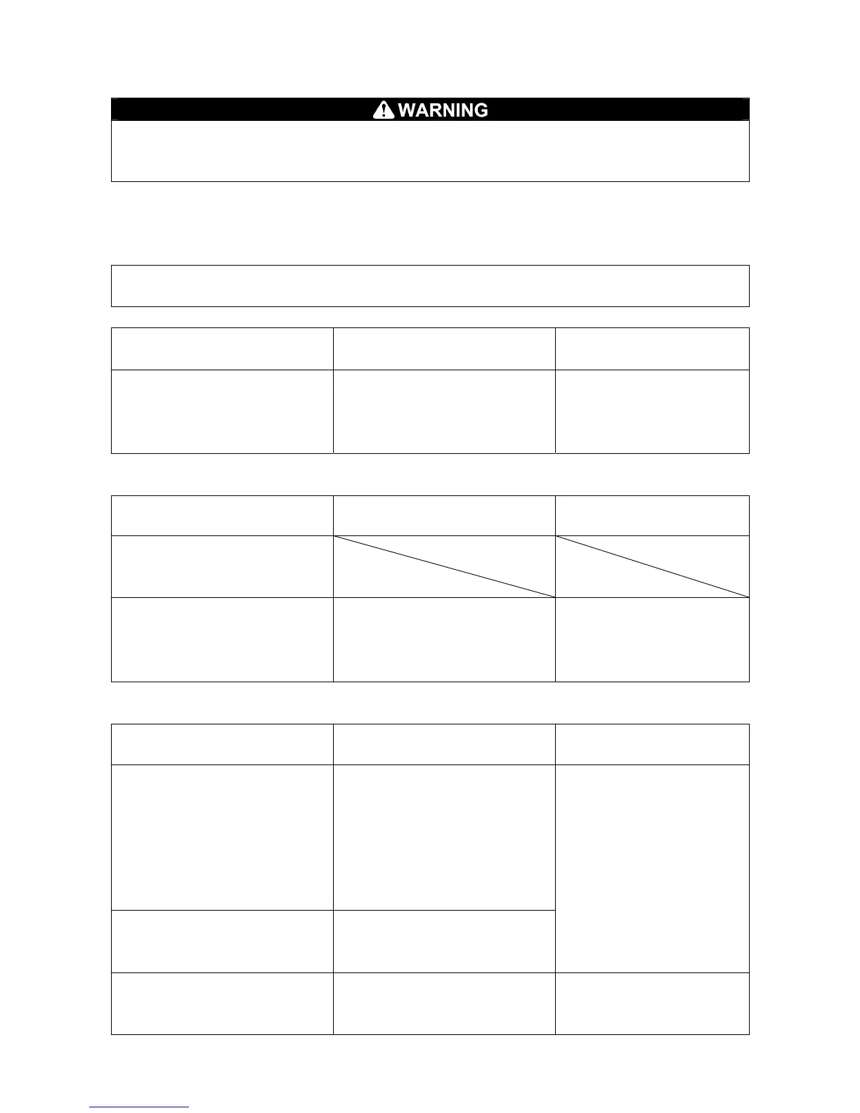 The table below shows what kind of “display and warning” will be issued and the resulting action of the