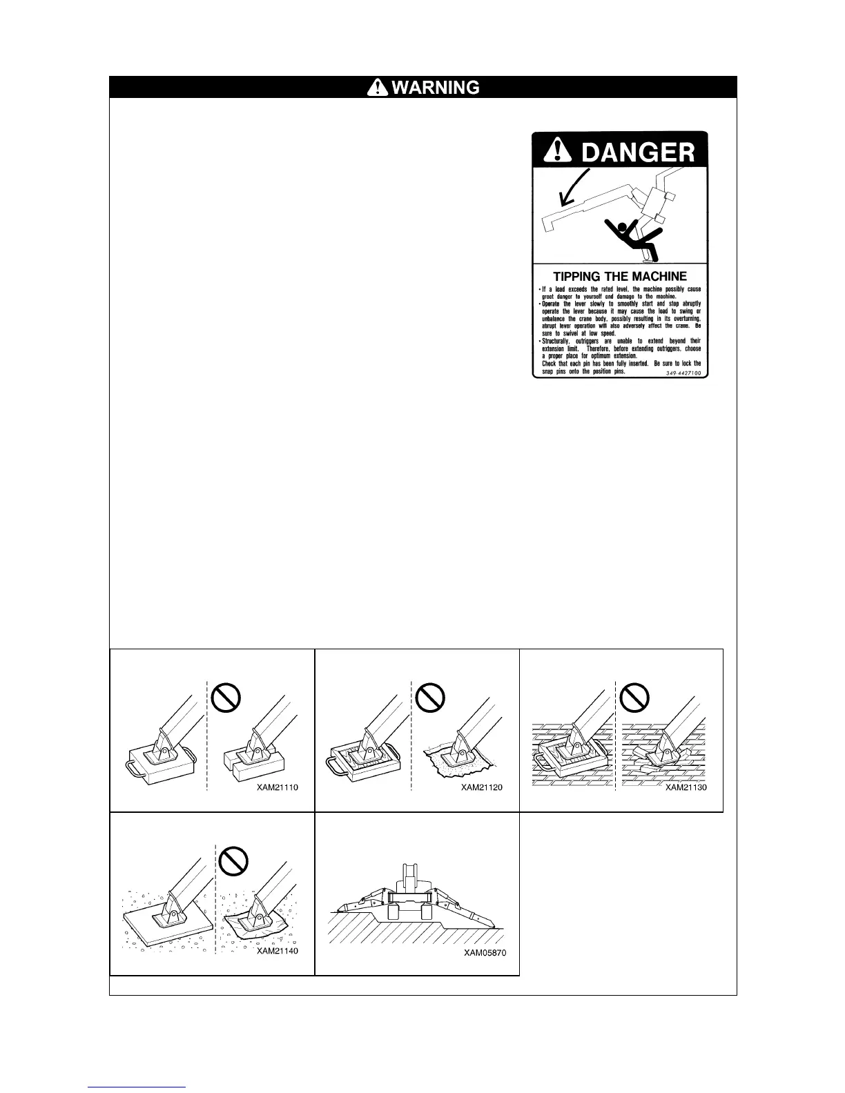 • If the ground is not protected or if the outriggers may sink even after protecting the ground,