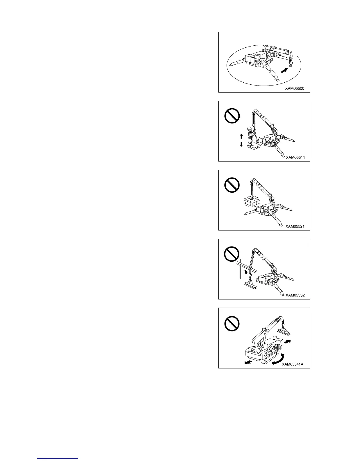 Do not perform slewing operation or crane operations.