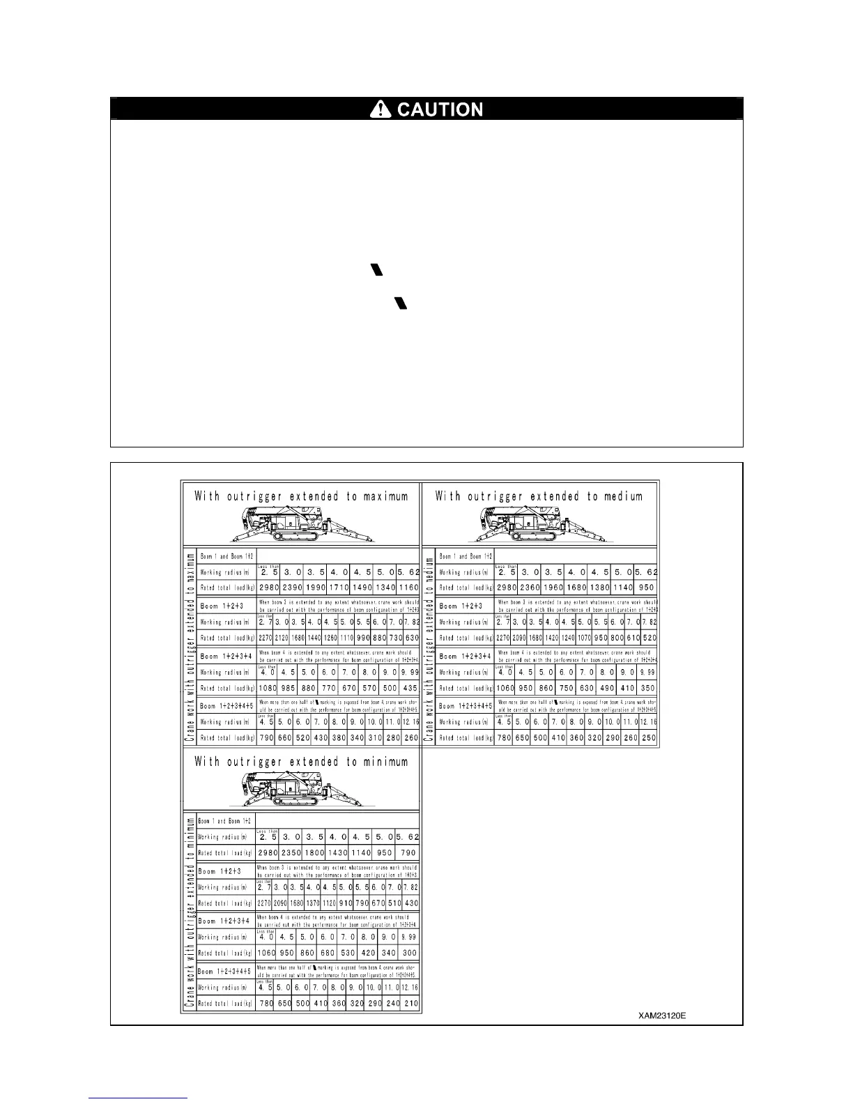 Rated total load chart is based on level, hard ground. Depending on the outrigger setting or