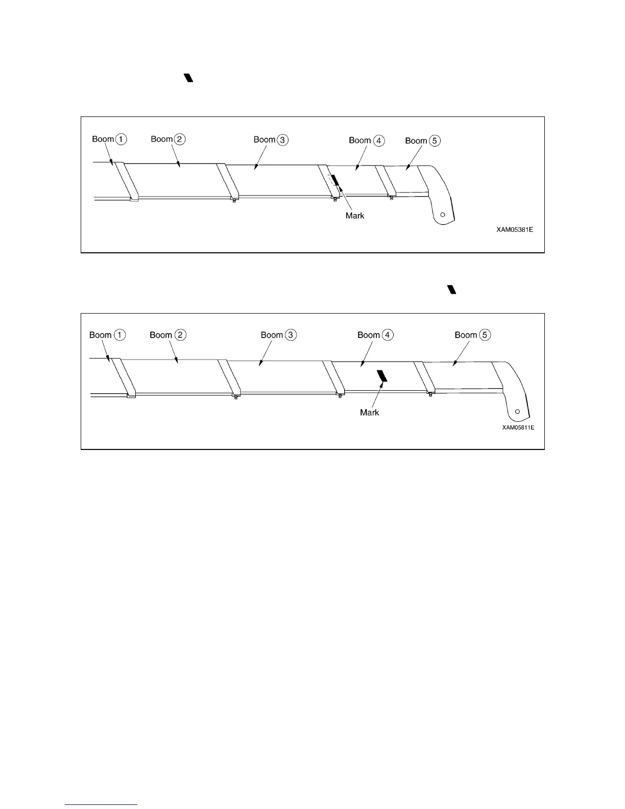 4. “Boom (1) + (2) + (3) + (4)”: With booms (2) and (3) fully extended, booms (4) and (5) are extended