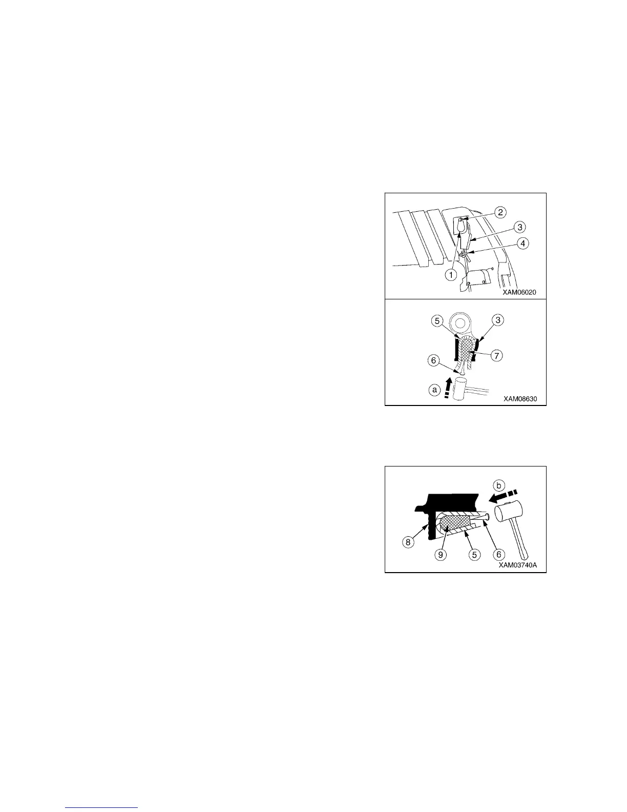 (2) Remove the rope wedge (9), lightly tapping the round bar (6)