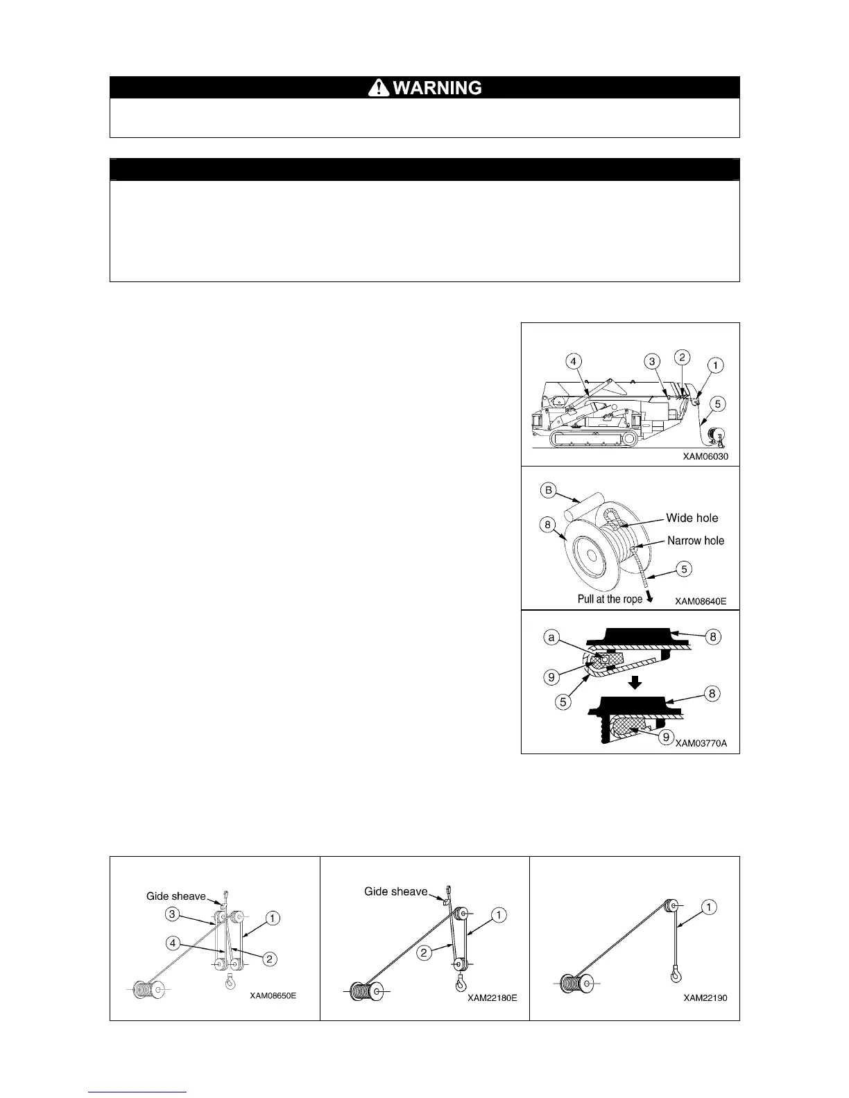 (2) The rope wedge (9) should be in position (a). Pass the wire