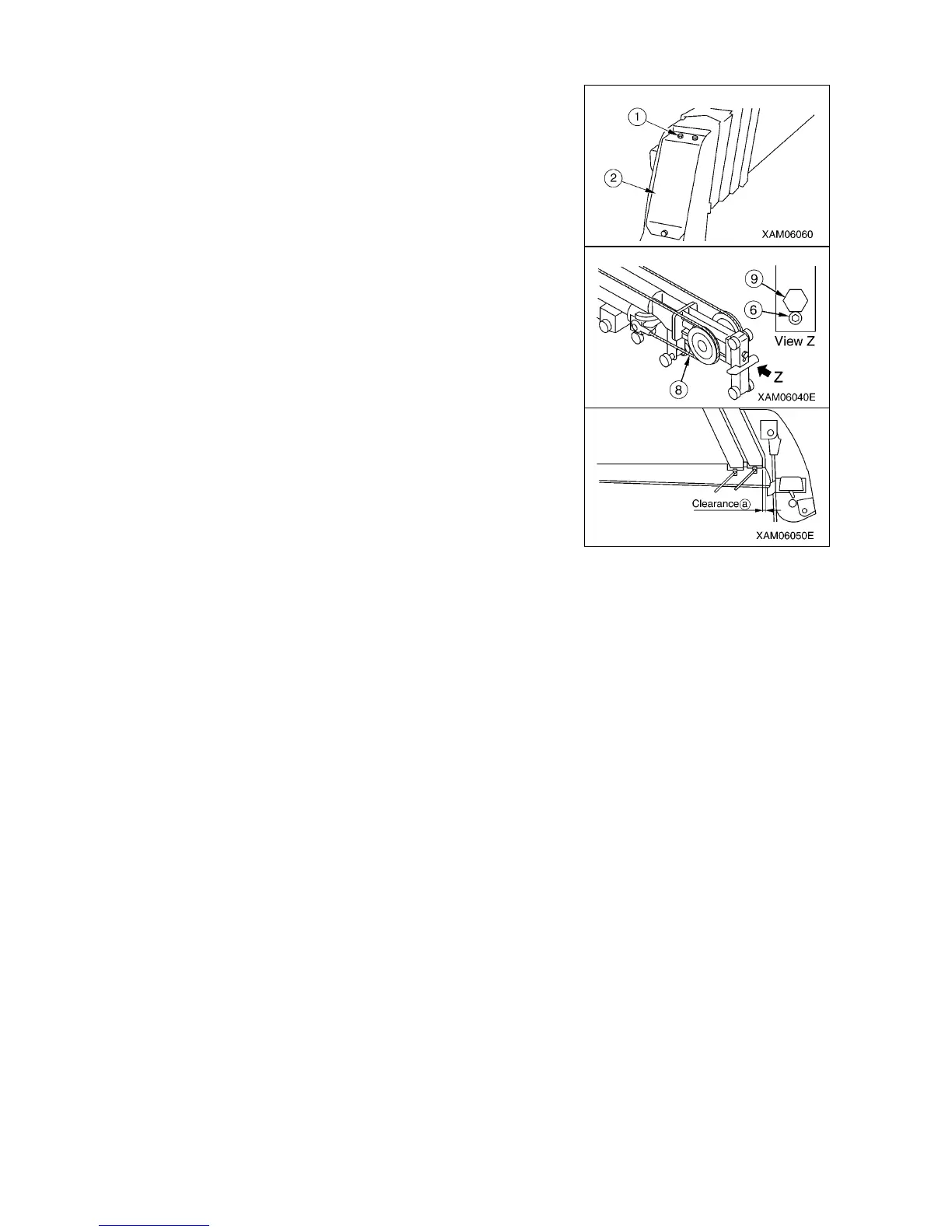 turn adjustment bolt (9) of the boom extending wire clockwise.